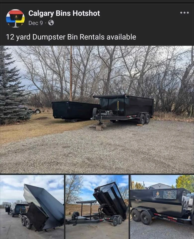 15π₯ HOT DEAL π₯ Check out our google reviews!!! βββββ(341) Hotshot Legend Calgary Bins Hotshot *APPOINTMENT ONLY* Available for RENT or PURCHASE 102L heavy duty bins are 400lbs Capacity 29x20x16 inches. Blank labels provided to write on. 70L also available for rent RENTALS 1st week $4.77 +GST each bin 2nd week FREE! 3rd week FREE! 4th week FREE! 80% off all extra time. ($0.95 / week) Every second week is FREE!!! $15 refundable deposit required for each bin PURCHASE prices Used bins (limited supply) New bins (Plenty IN STOCK) All bins for purchase are 400 lbs Capacity Heavy duty 29x20x16 inches 102L. Blank labels placed on bins. Brand NEW bins available. Limited time sale $13.13 off regular price. $12.86 each Brand new (red lids) Limited time sale $10 off regular price. 15.99 each brand new mastercraft (blue lids) $25.99 +GST Our Regular Price $25.99 +GST at Home hardware $24.99 +GST at Canadian Tire Never been used, cleaned inside & out in mint condition. Free labels placed on bins *Taxes apply, prices subject to change* USED bins (Limited supply) SALE $10.08 off regular price Gently used, cleaned/Sanitized inside & out with no cracks in perfect condition. $11.91 (grey lids) (Taxes apply. Regular price $21.99 +GST) *While supplies last, prices subject to change* Also available for rent for a much cheaper alternative. 12 yard (14 foot) Dumpster bin rentals available for loads needed to go to the landfill up to 9000 lbs. Need to purge & toss a bunch of junk before your movers arrive? Please message us for more details. Heavy duty 80" x 72" moving blankets $14.99 +GST *25% off* Reg. $19.99 *Prices & rates subject to change, while supplies last*