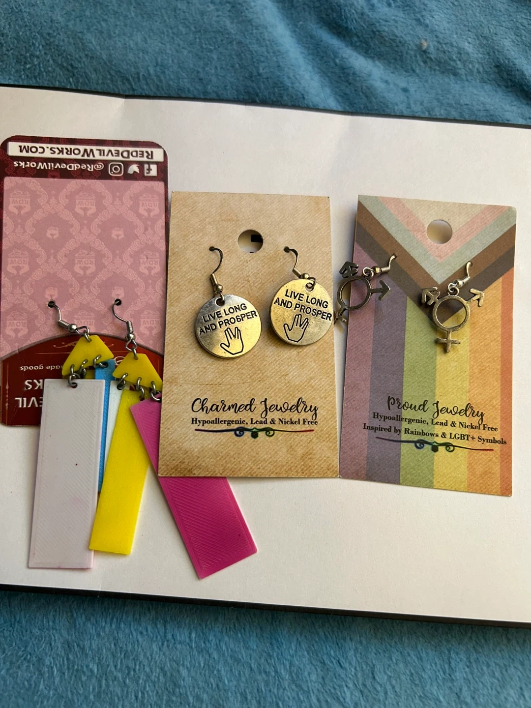 246Selling a variety of handmade earrings! Jewelry: Hypoallergenic, lead & nickel free - Charmed Jewelry: Hypoallergenic, lead & nickel free - Red Devil Works: Colorful 3D printed earrings