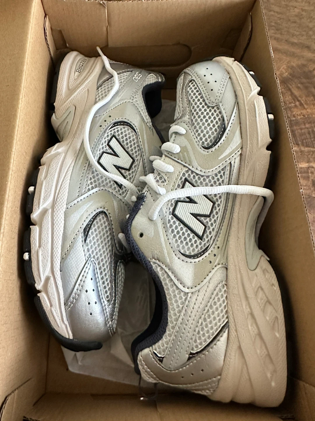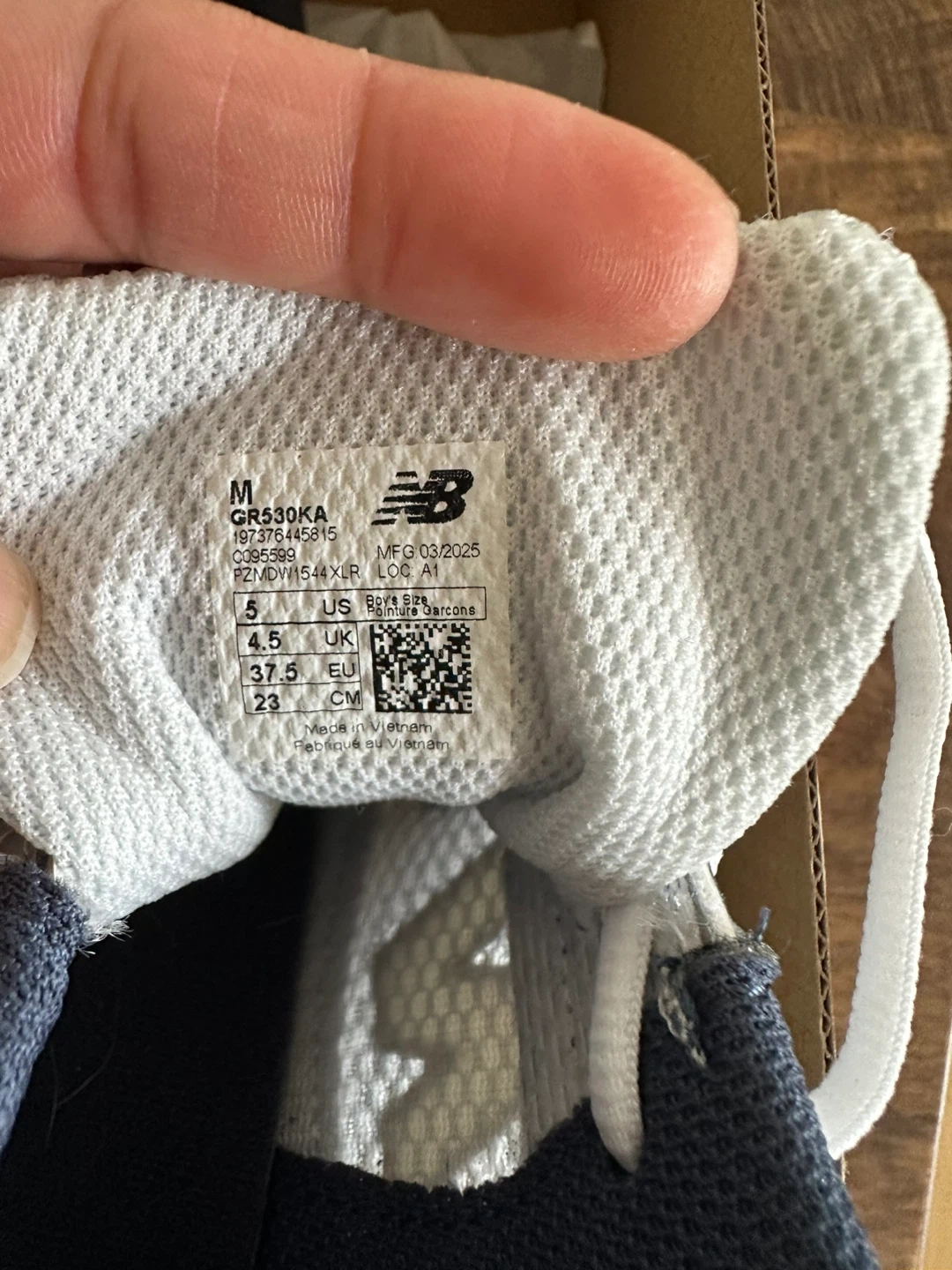 New Balance GR530KA kids shoes, size 5 US. They are white and silver