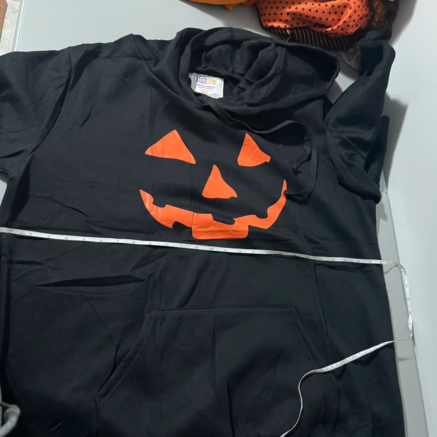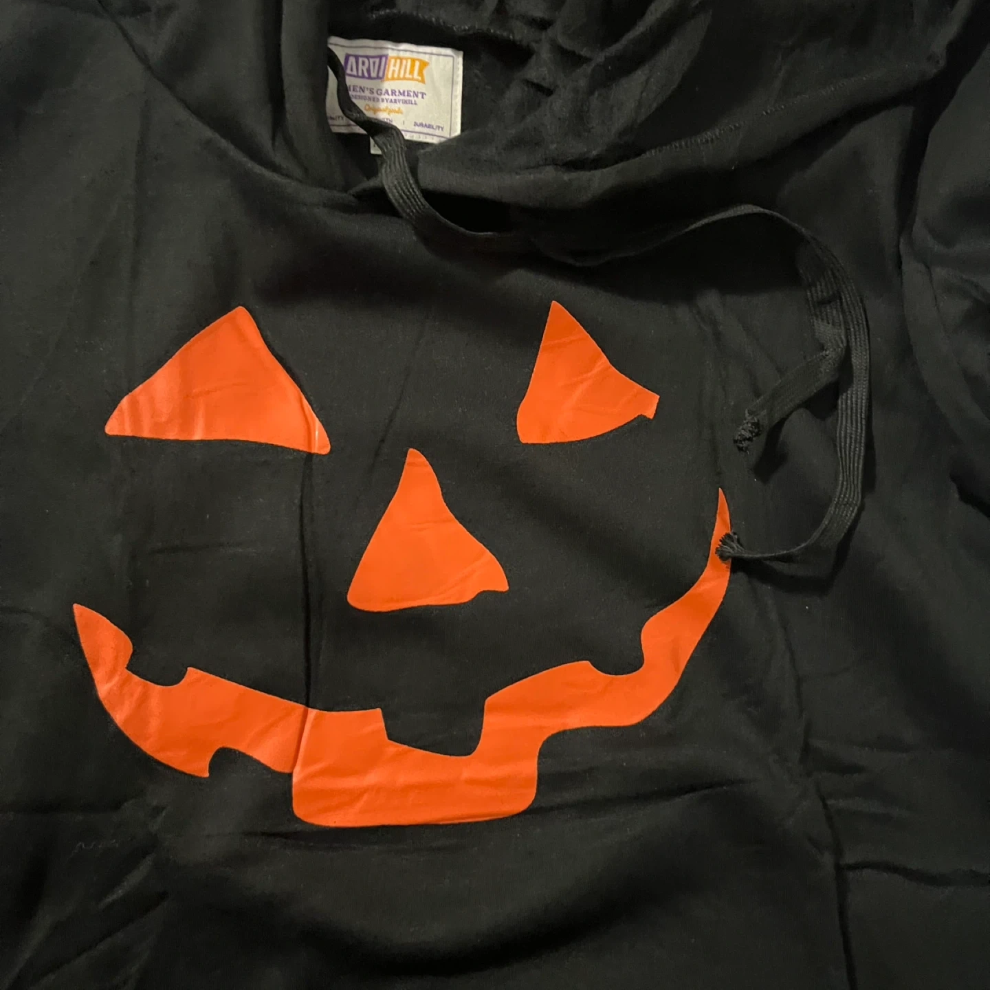 Cozy up this fall with a black Arvihill hoodie featuring a fun Halloween pumpkin design! This hoodie is a size XXL and made from a blend of 65% cotton and 35% polyester, making it both comfortable and durable. Perfect for adding a bit of spooky flair to your wardrobe!