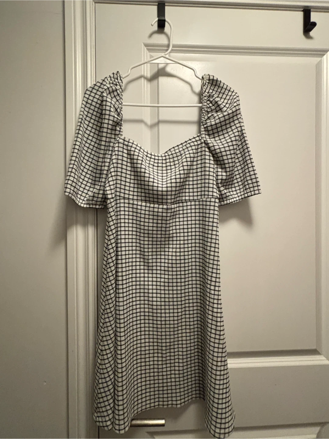 112Selling this adorable gingham mini dress! It features a flattering square neckline and trendy puff sleeves. Perfect for a picnic or a casual day out