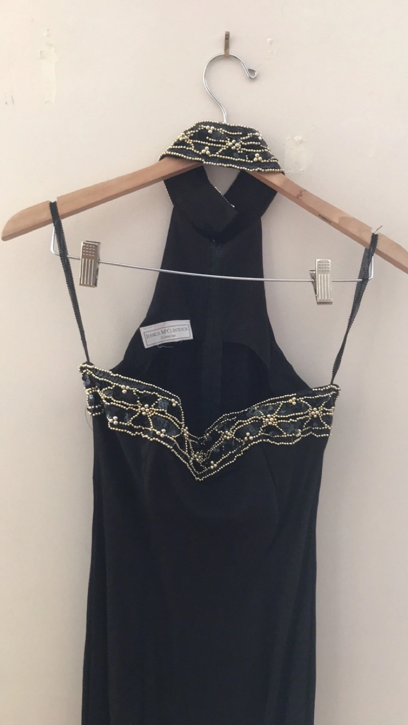 Selling a Jessica McClintock Gunne Sax black and gold dress. It has a unique beaded collar and detailing. Perfect for a special occasion! Size small Pick up location is 10 Alcorn Avenue Toronto M4V1E4