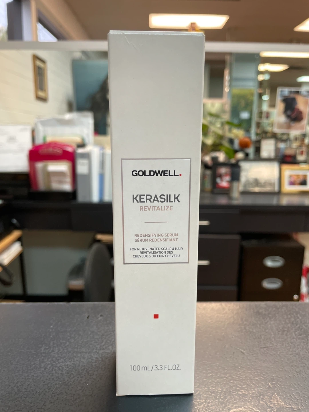 Selling a bottle of Goldwell Kerasilk Revitalize Redensifying Serum It's a serum designed to rejuvenate the scalp and hair. Strengthening thinning hair. Apply evenly onto towel-dried or dry scalp. Massage and leave in. The bottle contains 100 mL / 3.3 FL.OZ. $55 plus tax More items in salon. Welcome to visit us on Tue to Sat, 10am - 5pm