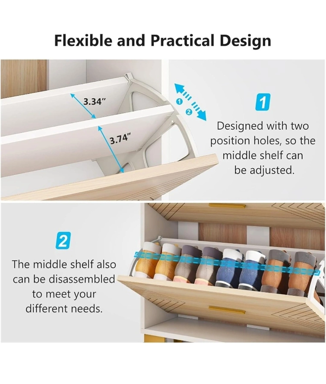 Shoe Storage Cabinet Organizer with 3 flip drawers