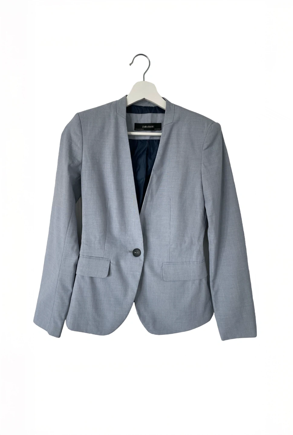 Selling a Zara Basic blazer and pants suit. The blazer and pants are a matching set in a light grey colour. The blazer is a size small and the pants are a size 2. Perfect for work or a special occasion!