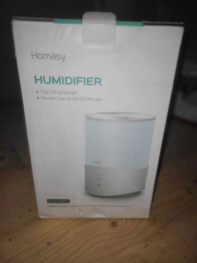 I'm offering a brand new Homasy Humidifier, featuring a top-filling design and double use as an oil diffuser, perfect for adding moisture and soothing effects to dry air. This humidifier is still sealed in its original box, ensuring it's in pristine condition and ready to use right out of the package. Key features include: * 2.5L Capacity * 180 ml/h Max Mist Output * Suitable for a small sized room (200-300 square feet) * Ultrasonic Cool Mist * Rated Voltage: 120V-50/60Hz * Rated Power: 25W * Top Filling Design for easy refill and cleaning. * 7-Color Mood Light * Adjustable Mist Modes and Sleep Mode * Can be used as an oil diffuser * Auto Power off function This delightful device can be yours for $50. Add a little moisture and serenity to your life with this Homasy Humidifier! If the ad's still up, the humidifier is still available—no need to ask, just reach out!