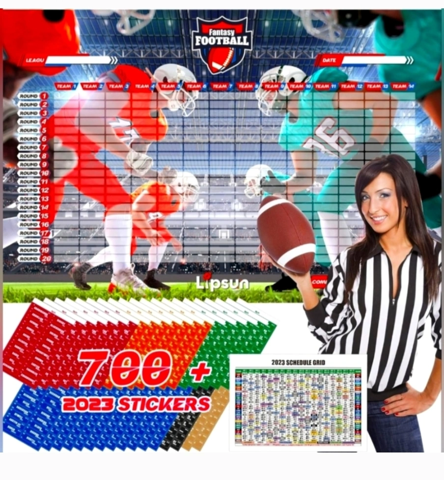 Get ready for fantasy football with this set of 700+ stickers! Includes player stickers, team stickers, and blank stickers. There are also top rookie stickers. These stickers are designed to be durable with HD color and original designs. Also included is a 2023-2024 schedule grid to help you manage your team's lineup
