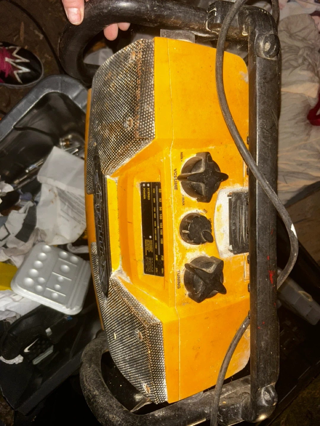 68Selling a dewalt Job Site Radio. It's a rugged radio designed for use on construction sites and other demanding environments. It features a durable construction and a built-in handle for easy transport. It has a few scratches and scuffs, but it is still in good working condition