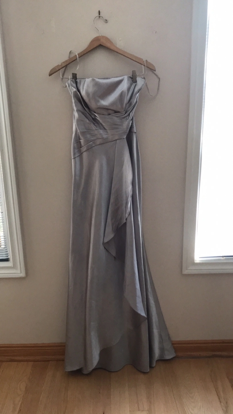 839Selling a beautiful silver strapless formal dress! It's in great condition, perfect for a special occasion. The dress features a flattering design and a flowing skirt. It has a zipper in the back Size small and a label that has been cut out. Itchy I assume Pick up location is 10 Alcorn Avenue Toronto M4V1E4