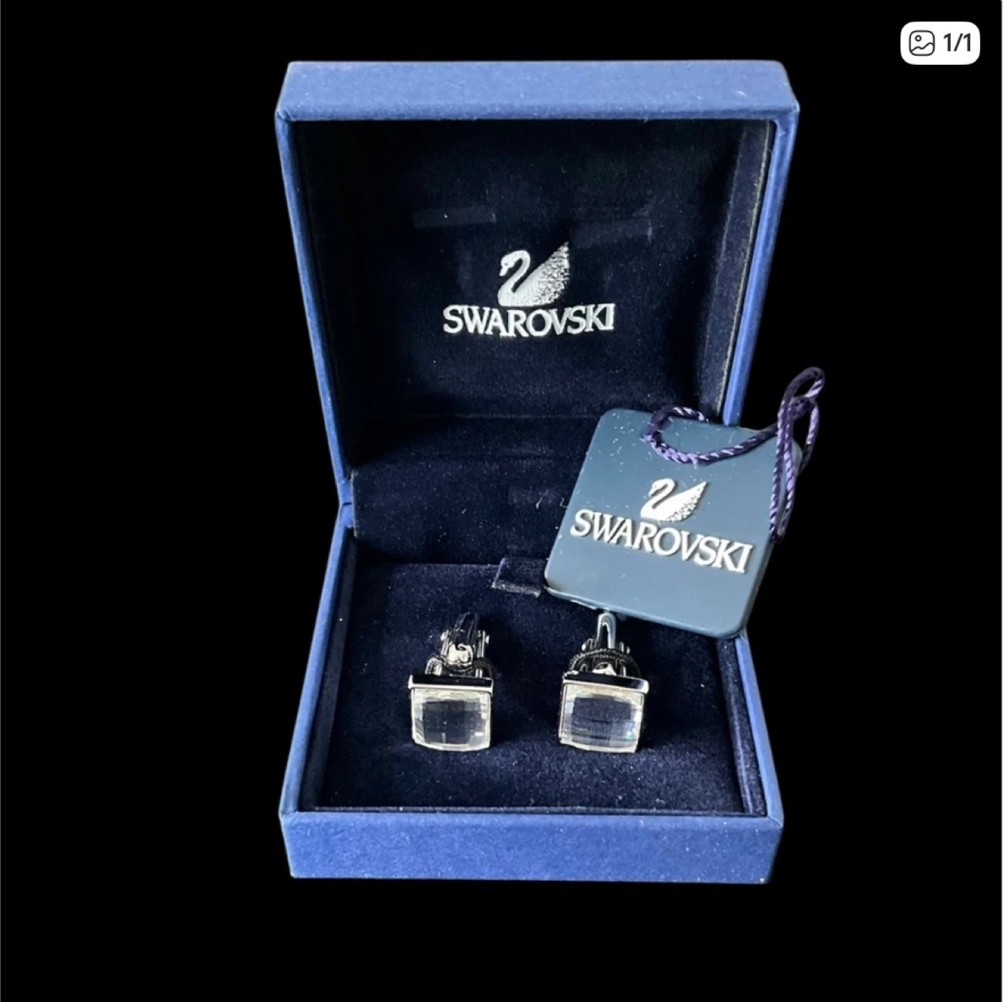 These are a pair of Swarovski crystal Cufflinks . They come in their original box, perfect for gifting or keeping them safe. They're in great condition and ready to add a touch of sparkle to your style!