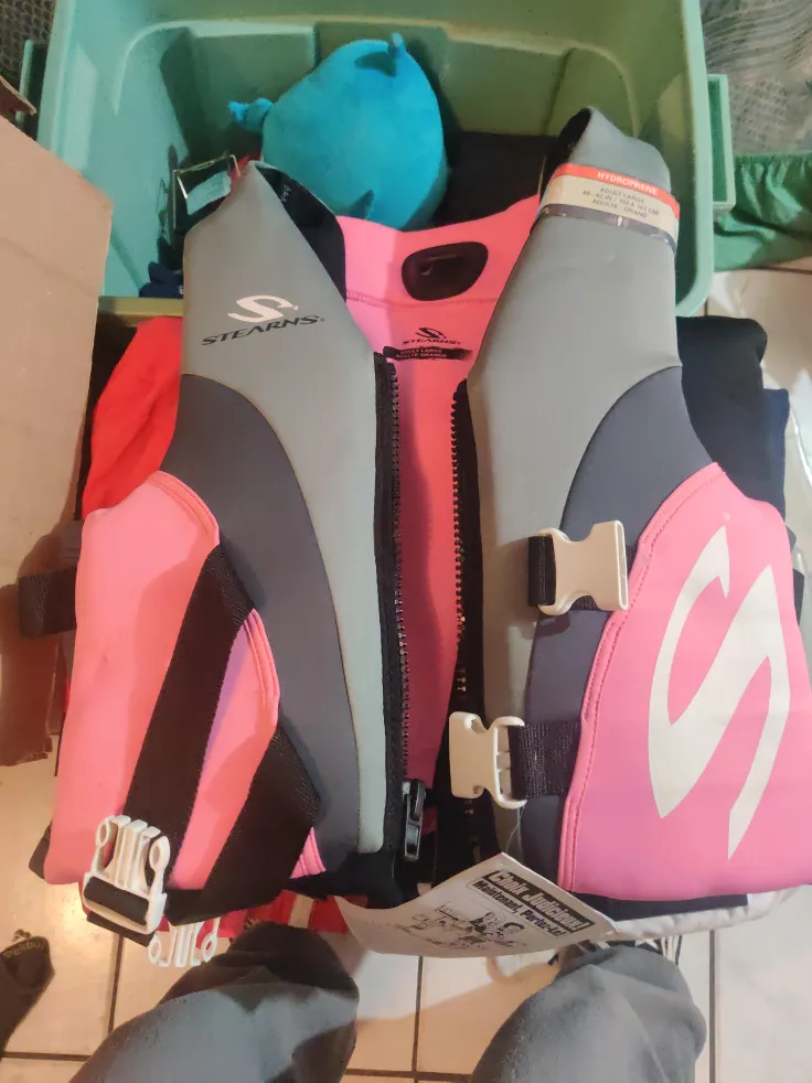 Selling a Stearns Hydroprene life jacket in adult large size. It's in great shape and ready for your next water adventure! The jacket is pink, grey and black. pick up only price firm