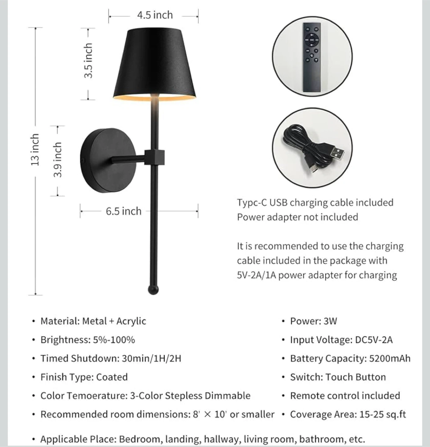 This stylish black wall lamp is perfect for adding a touch of modern elegance to your bedroom, landing, hallway, living room, or bathroom. It features a convenient remote control for easy adjustments.