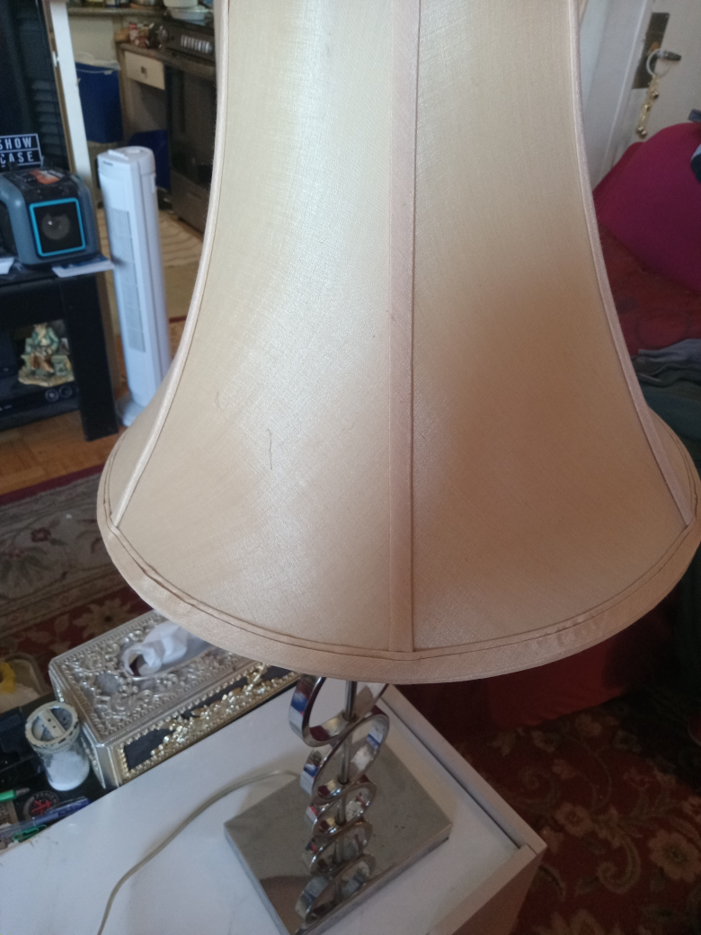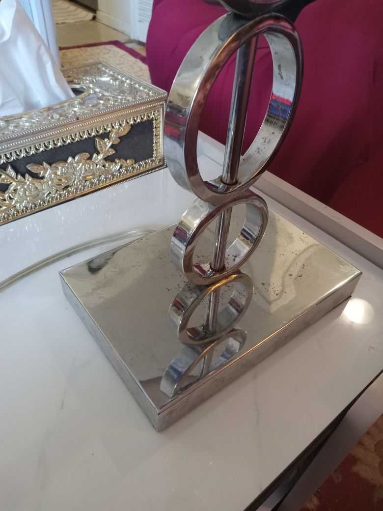 Add a touch of modern elegance to your space with this stylish table lamp! It features a chrome ring accent design and a neutral-toned lampshade. Perfect for a bedside table or living room side table, this lamp will provide warm and inviting light to any room