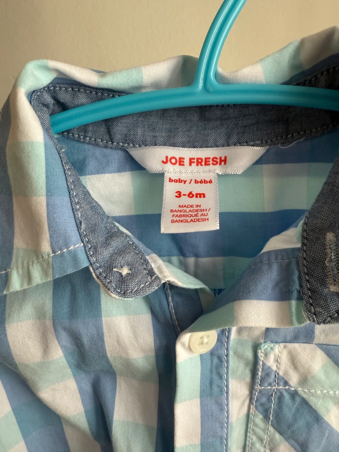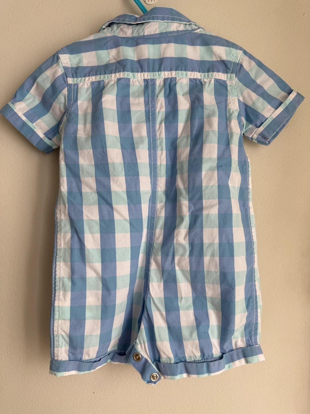201A cute baby romper! It's a blue and white checkered pattern. Size is 3-6 months Like new For pick up