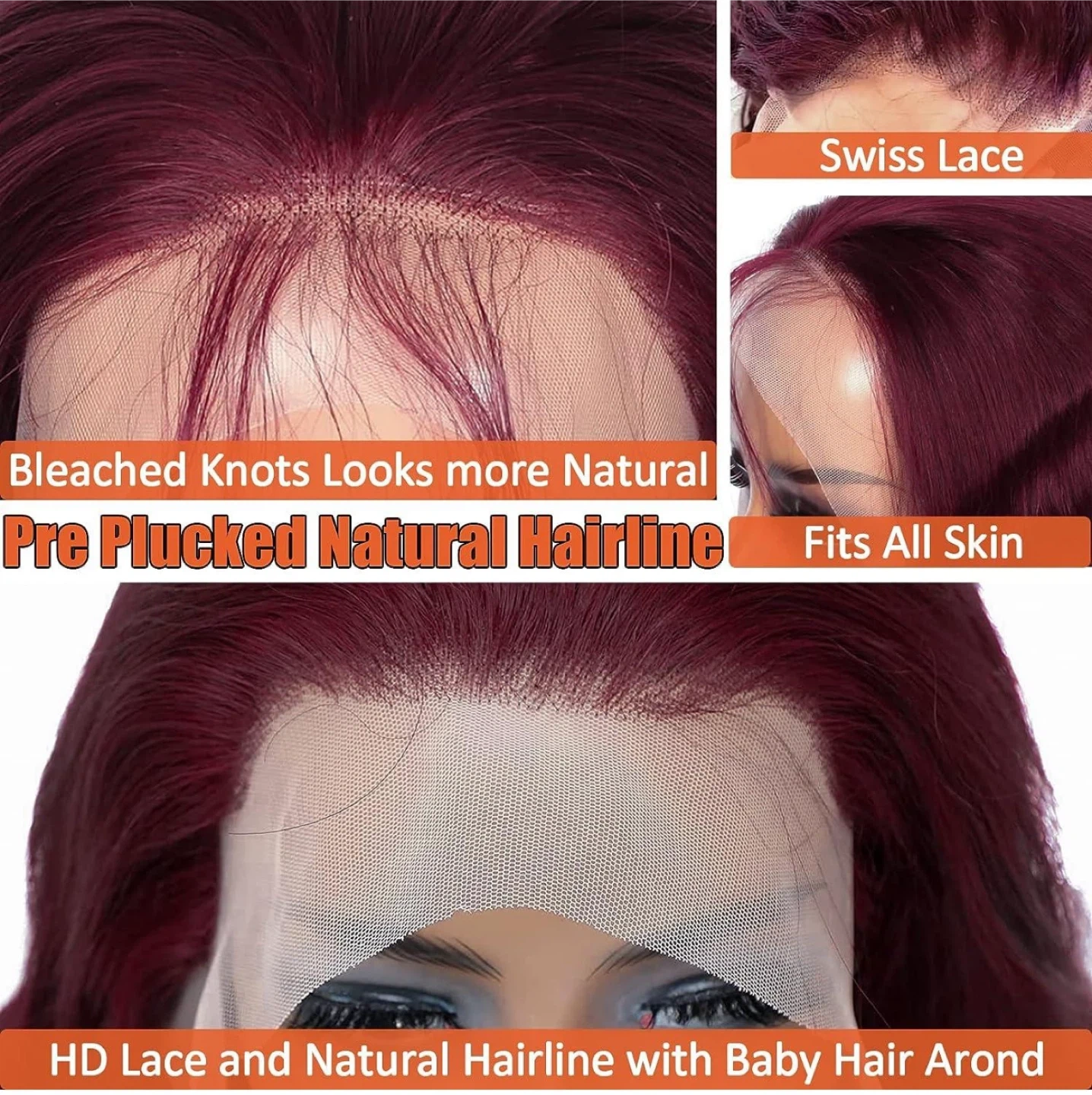 26 Inch Burgundy Lace Front Migs Human Hair Glueless Body wave.