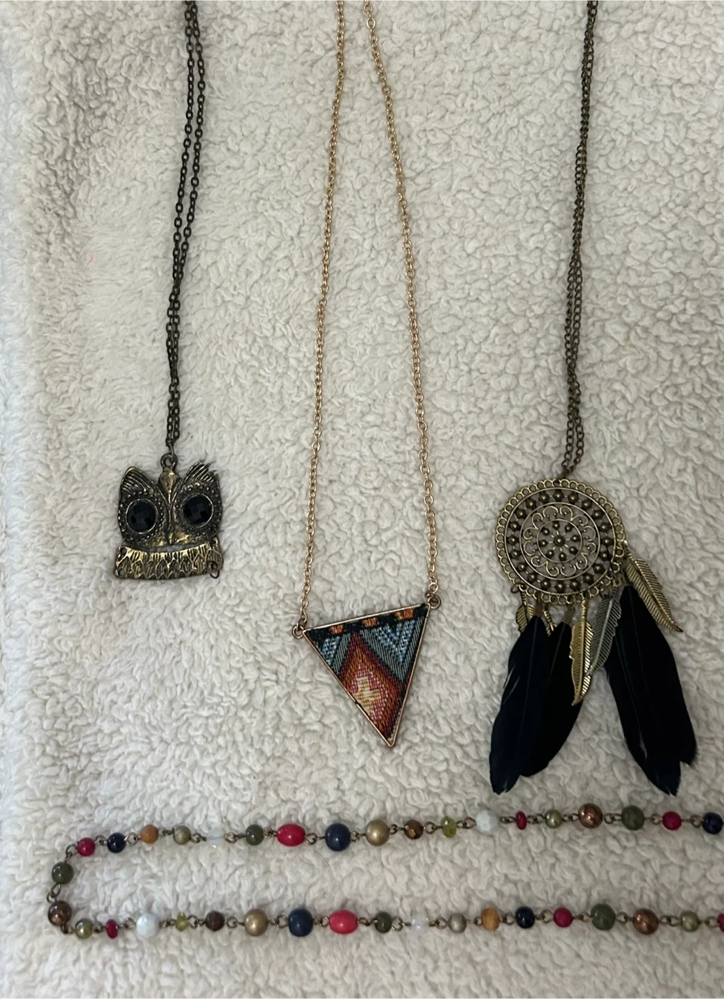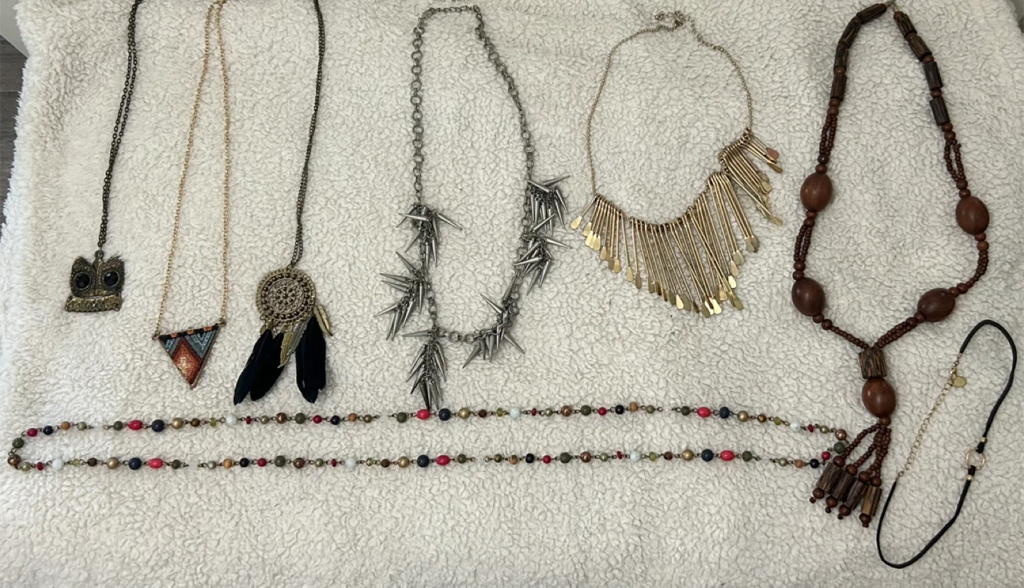 Selling a collection of necklaces. They are in good condition. Variety of styles and colours. Perfect for accessorizing any outfit!