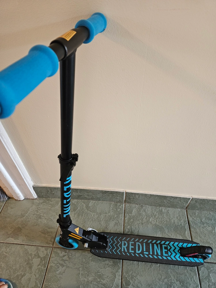 Selling a Redline foldable cadet scooter like new! It's black with blue accents. Perfect for young kids. paid 80. 3 adjustable heights starting at.2 and a half feet downwards.