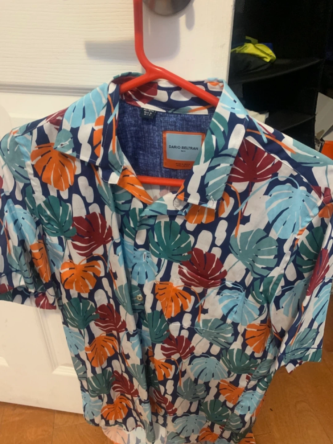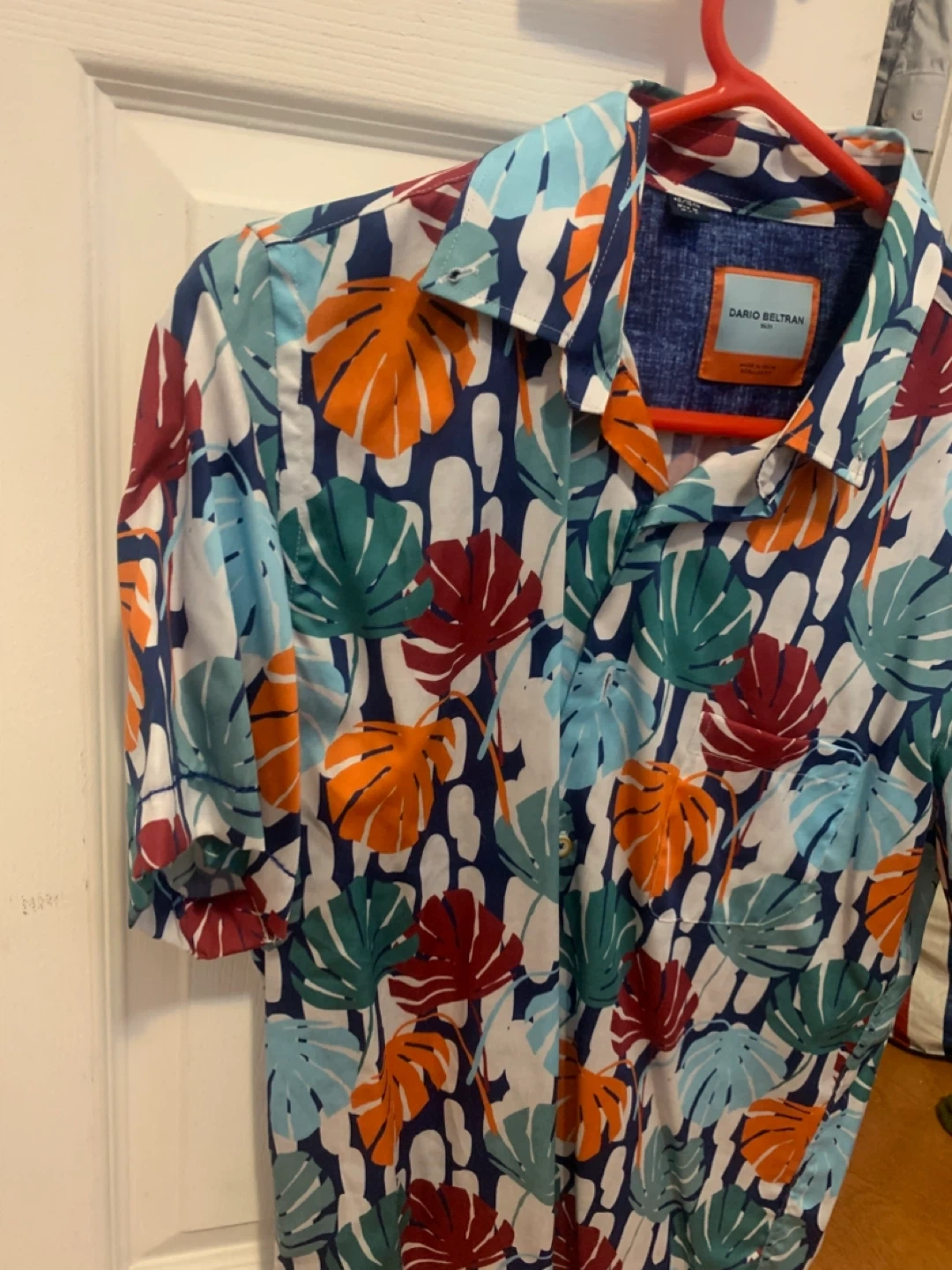 144This Dario Beltran shirt features a vibrant floral pattern with a mix of colours like blue, orange, and green. It's perfect for adding a pop of colour to your wardrobe!