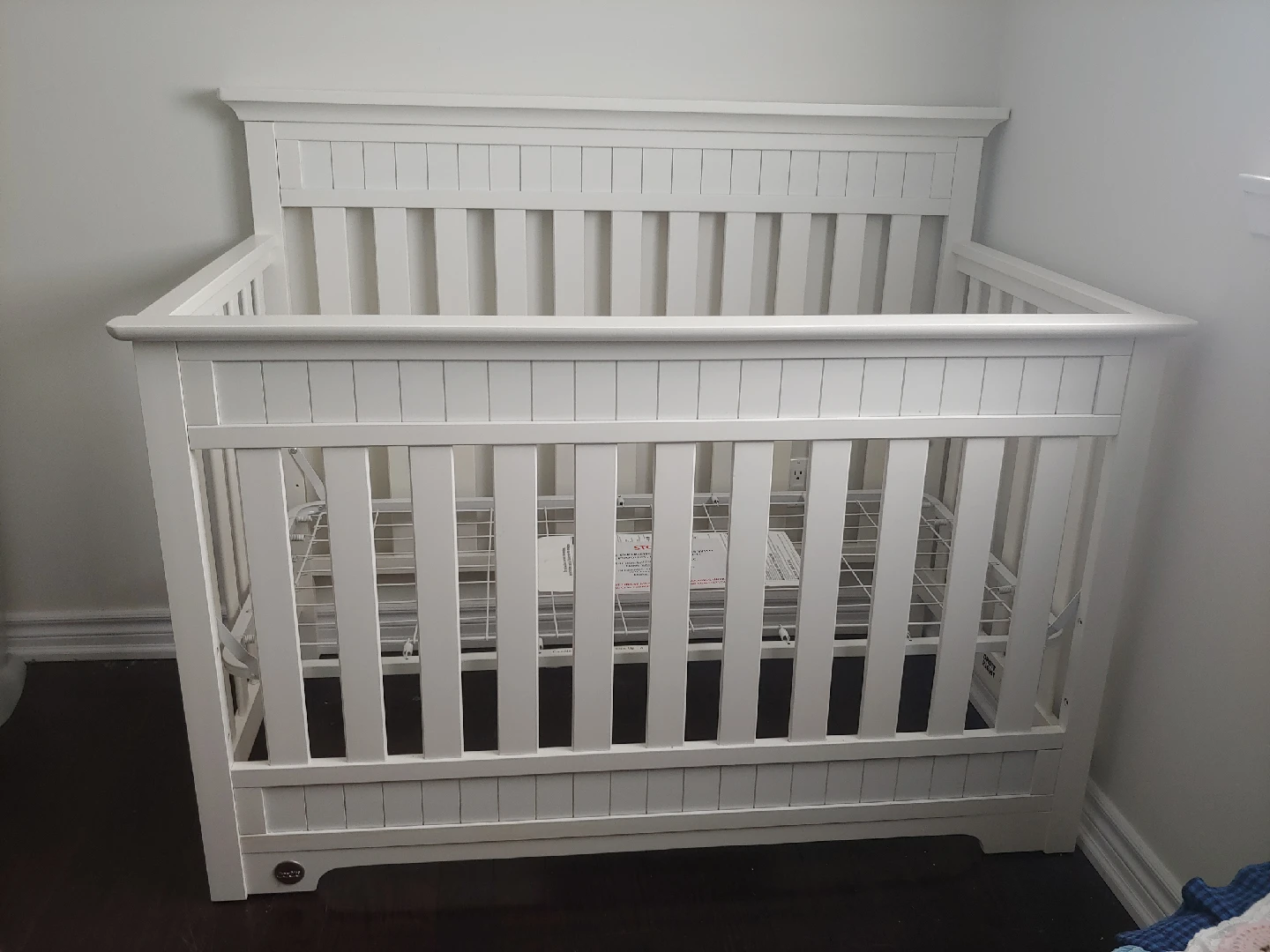 Selling a fisherprice baby crib in great condition! It's a lovely piece for any nursery and converts to a toddler bed by removing the front rail. Looks beautiful but has a few scratches on the front rail as shown.
