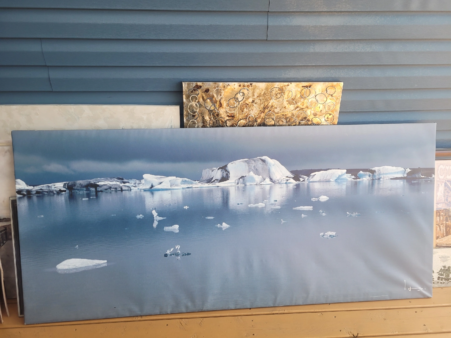69I'm selling a beautiful landscape art piece. It features a serene scene with icebergs and water. It would look great in any room! the detentions are 6ft,7" wide 2ft,11" tall cash only, i am open to bargains