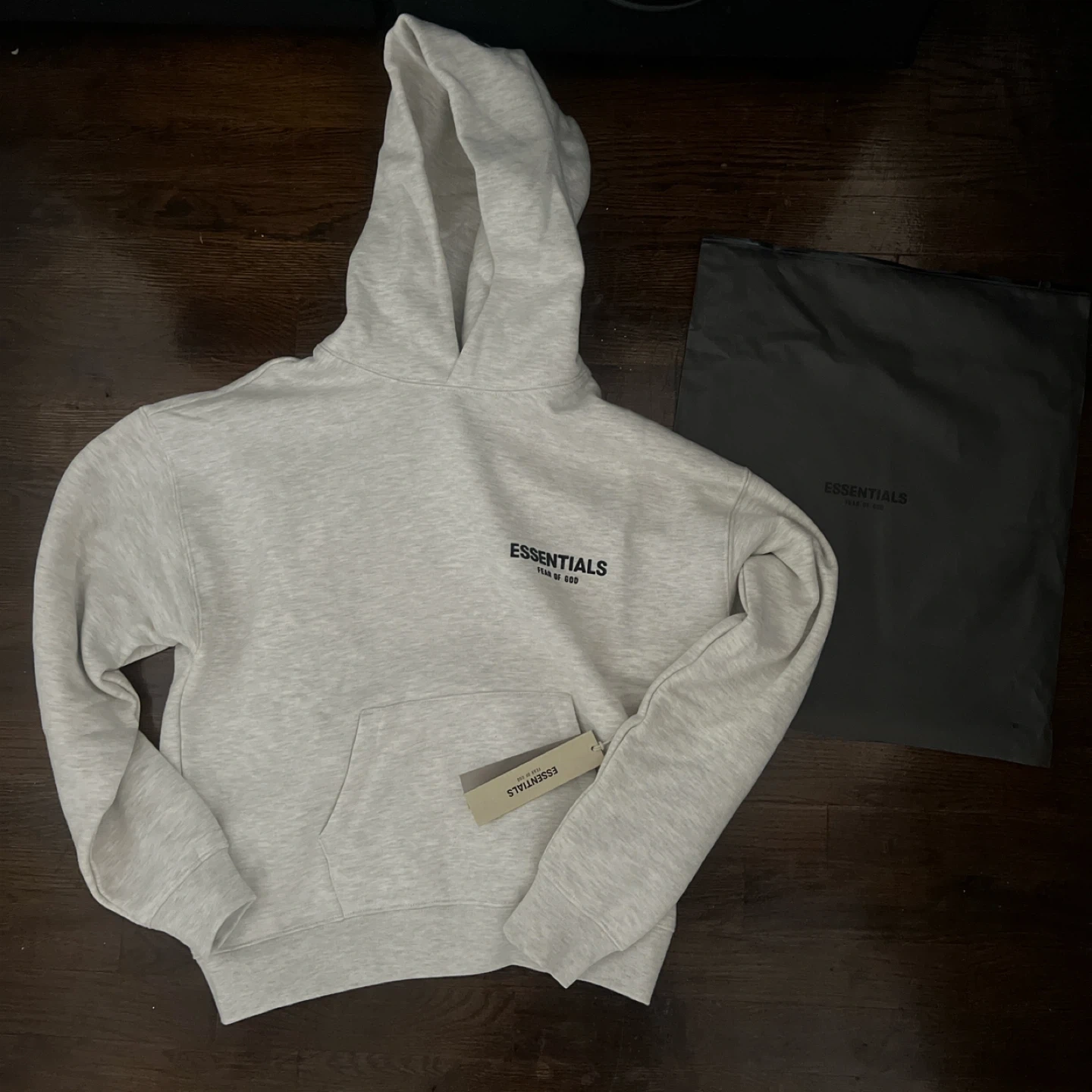 Selling a light gray Essentials Fear of God hoodie in size XXS. It comes with its original packaging!