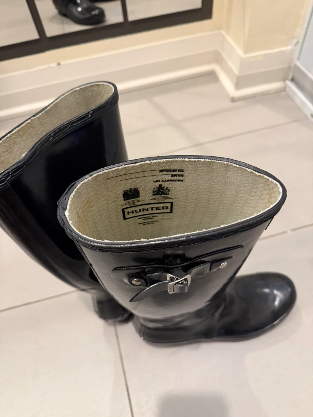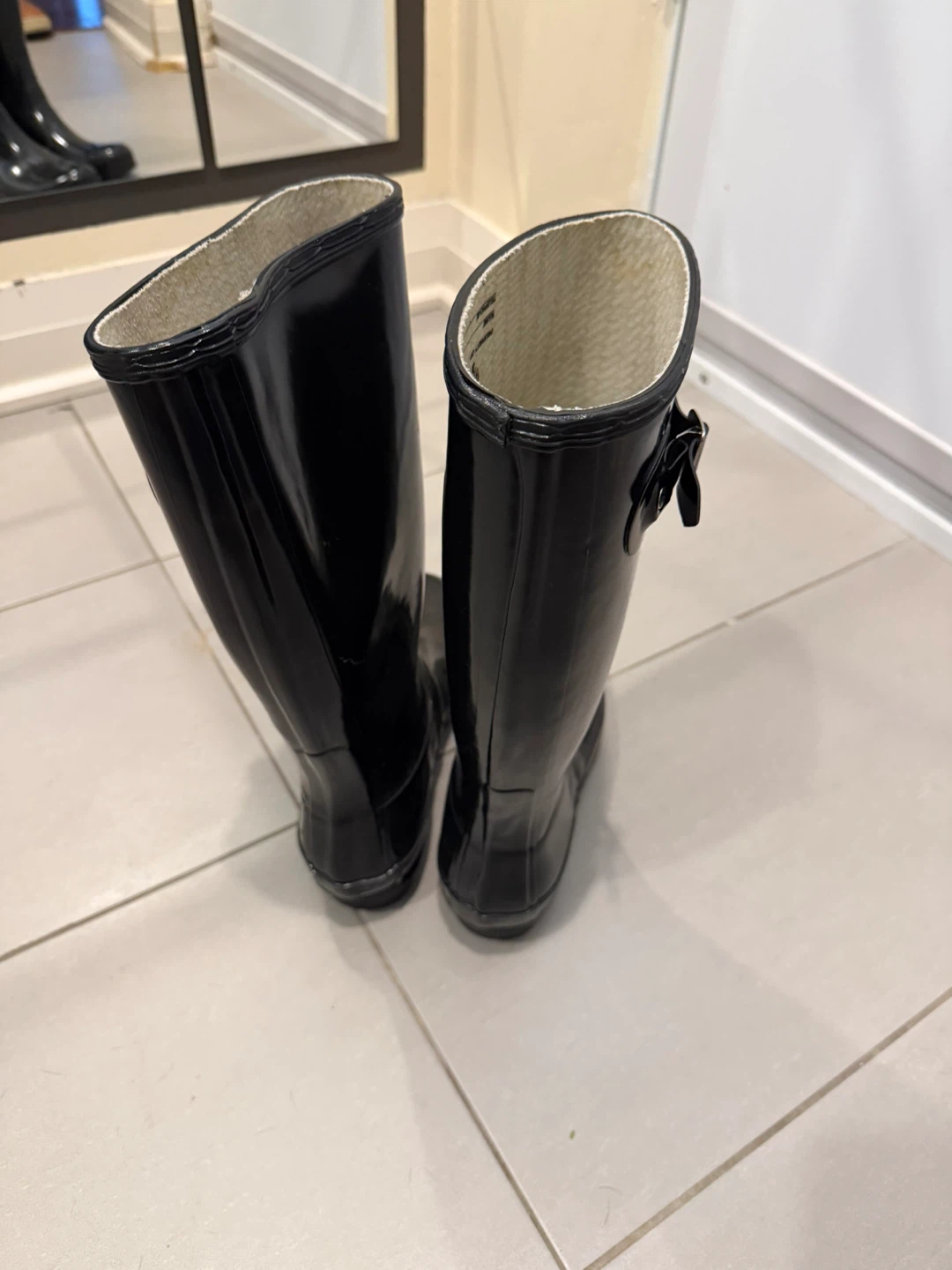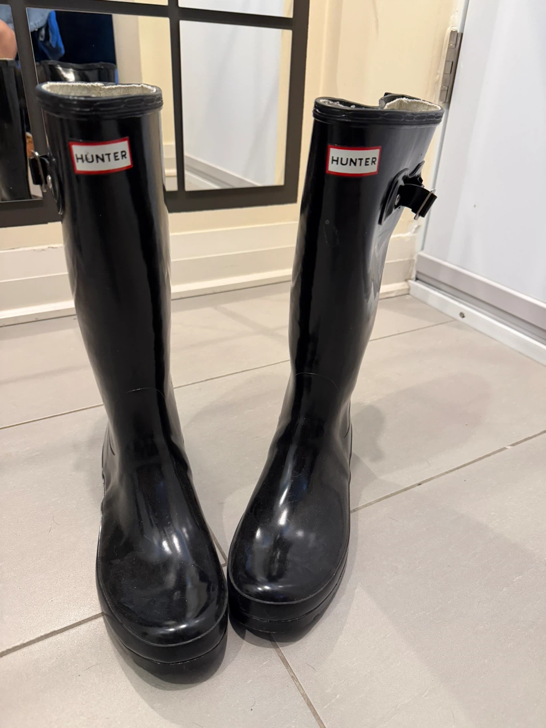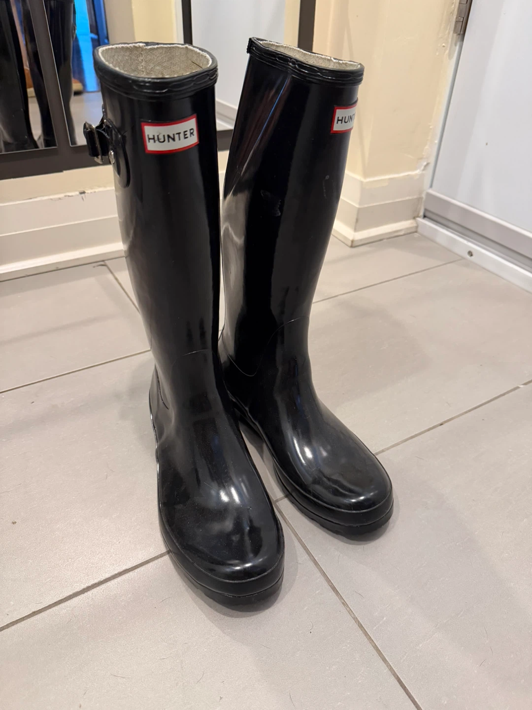 Selling a pair of classic Hunter rain boots in black gloss. They're in great shape and ready for those rainy Canadian days!