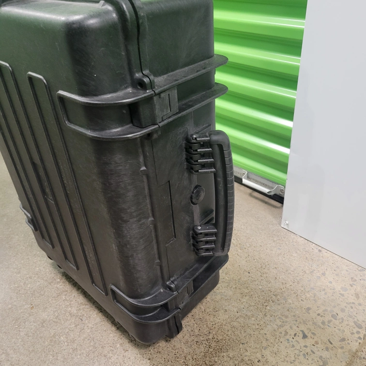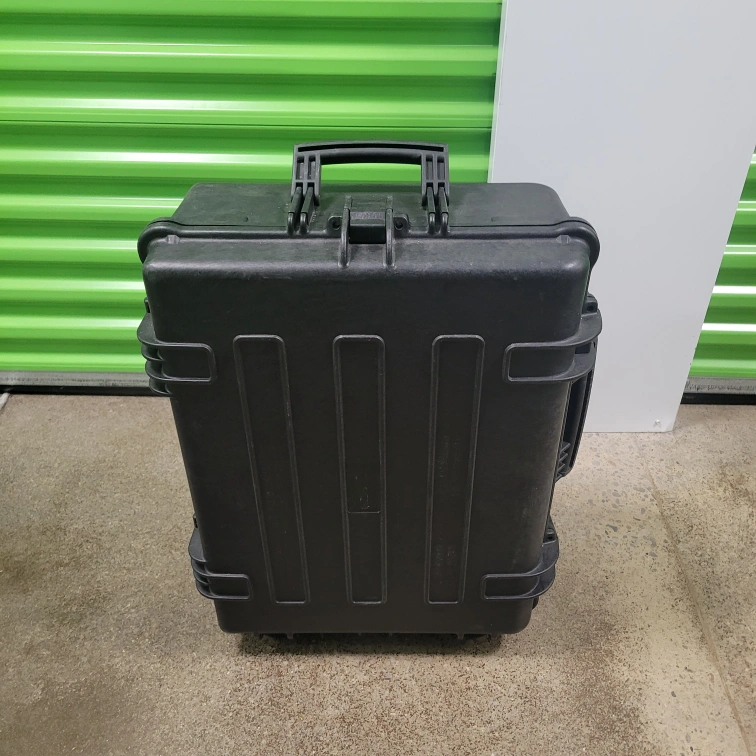 Selling a black rolling hard case. It's in great shape and ready to protect your valuable items during transport or storage. The case features a sturdy handle and wheels for easy mobility. Water-tight seal.