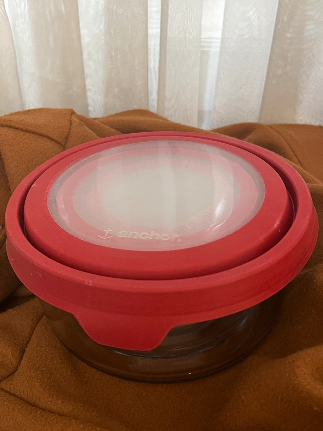 Selling a set of 3 Anchor Hocking glass food storage containers! These are microwave safe, great for meal prepping or storing leftovers.