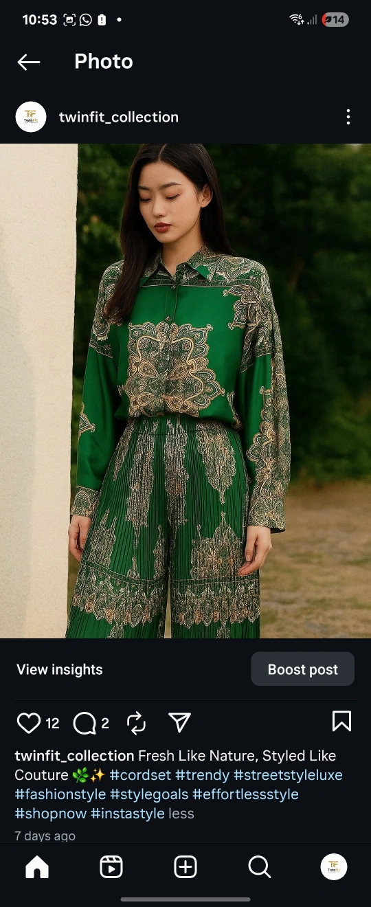 Selling a Twinfit Collection green cord set. This fresh, nature-inspired set is perfect for a stylish and effortless look. The set includes a long-sleeve shirt and pleated wide-leg pants.
