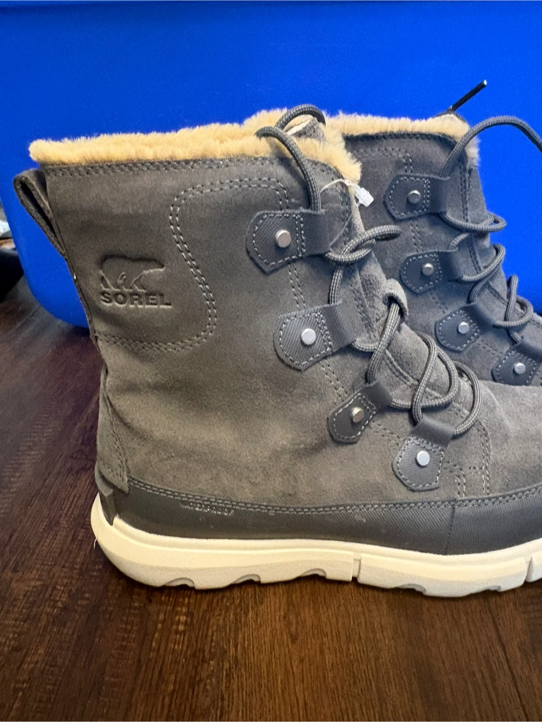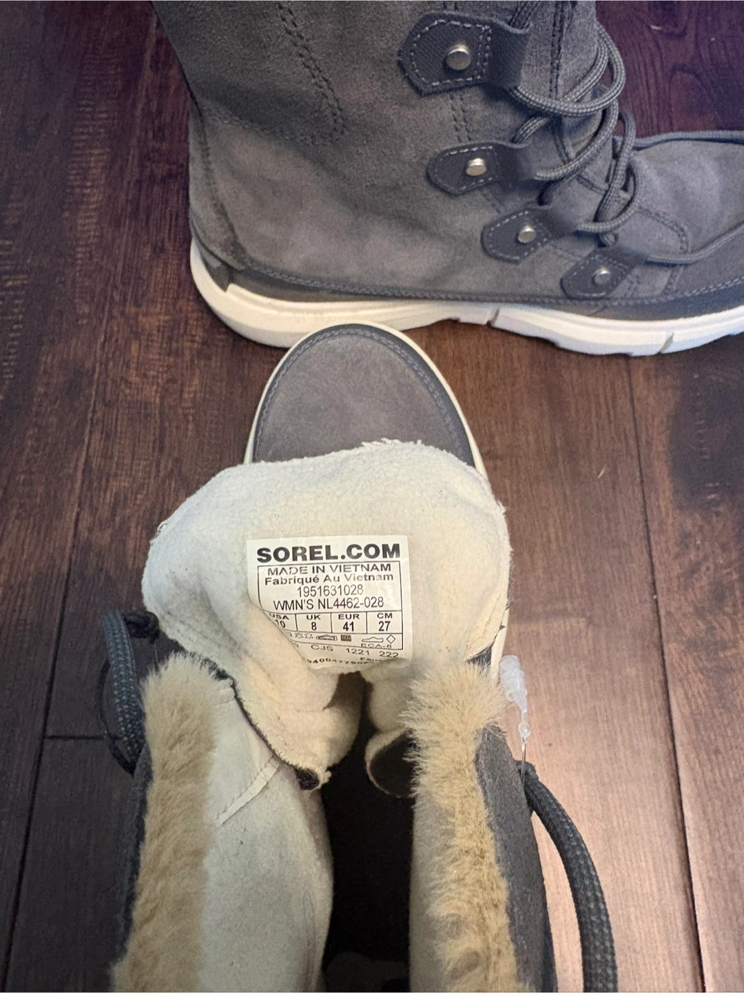 Selling a pair of Sorel women's winter boots in a lovely gray colour. They are a size 8. Perfect for keeping your feet warm and stylish this winter!
