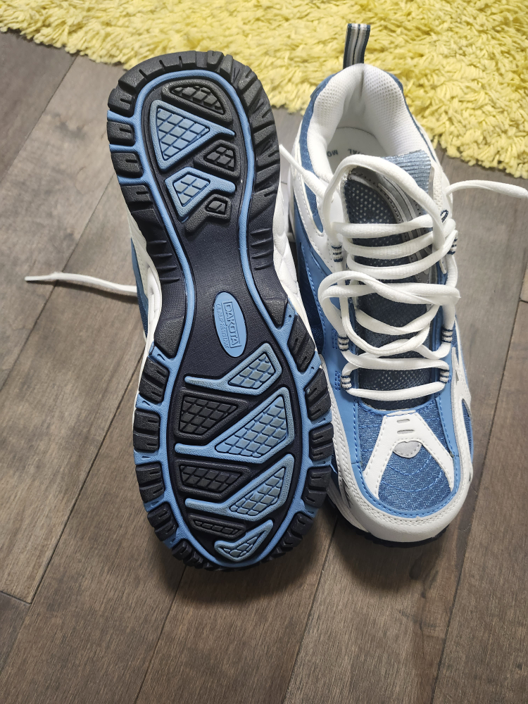Here's a pair of Dakota steel toe safety shoes for women! They're a lovely blue and white colour.
