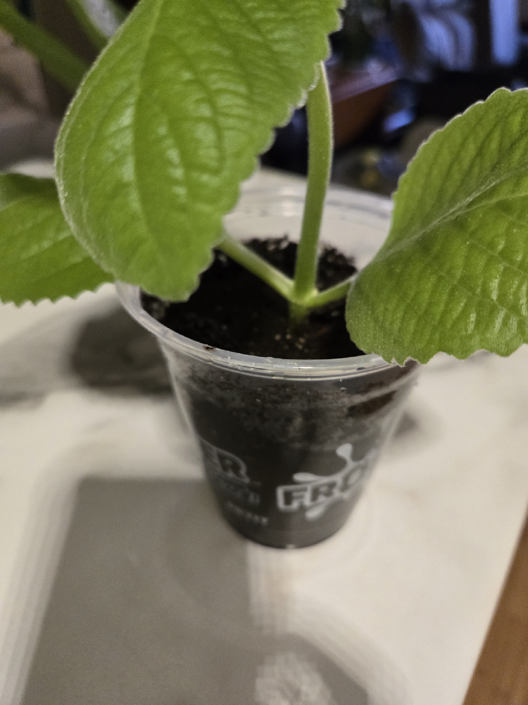 It's a beautiful green colour and comes in a small plastic pot with soil.