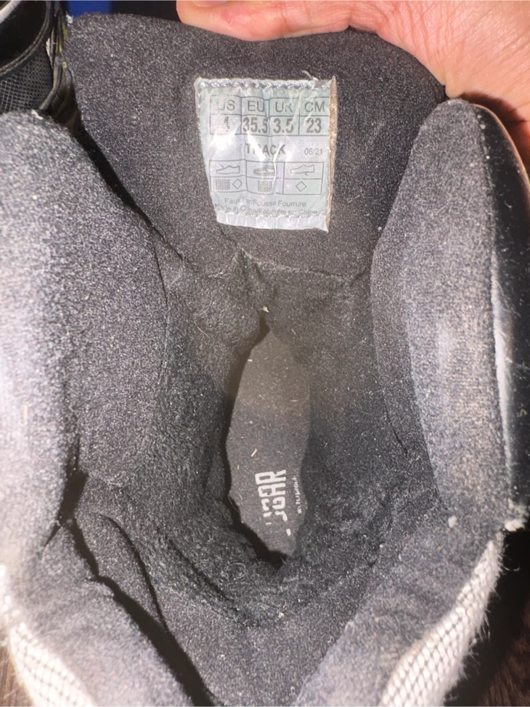 Selling a pair of Cougar winter boots in black with yellow accents! They are a size 4 US. These boots have been used, but still have plenty of life left for those cold winter days
