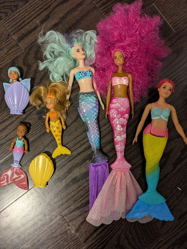 Huge Barbie collection up for grabs! Multi-level dreamhouse with a fun slide and pool, plus lots of small accessories like kitchen stuff and food. Multiple Barbie dolls, including mermaid dolls, Chelsea, baby dolls, and fashionista dolls with cool outfits. Lots of clothes, shoes, accessories, and pets. Take all for $140. Pickup in Nobleton.