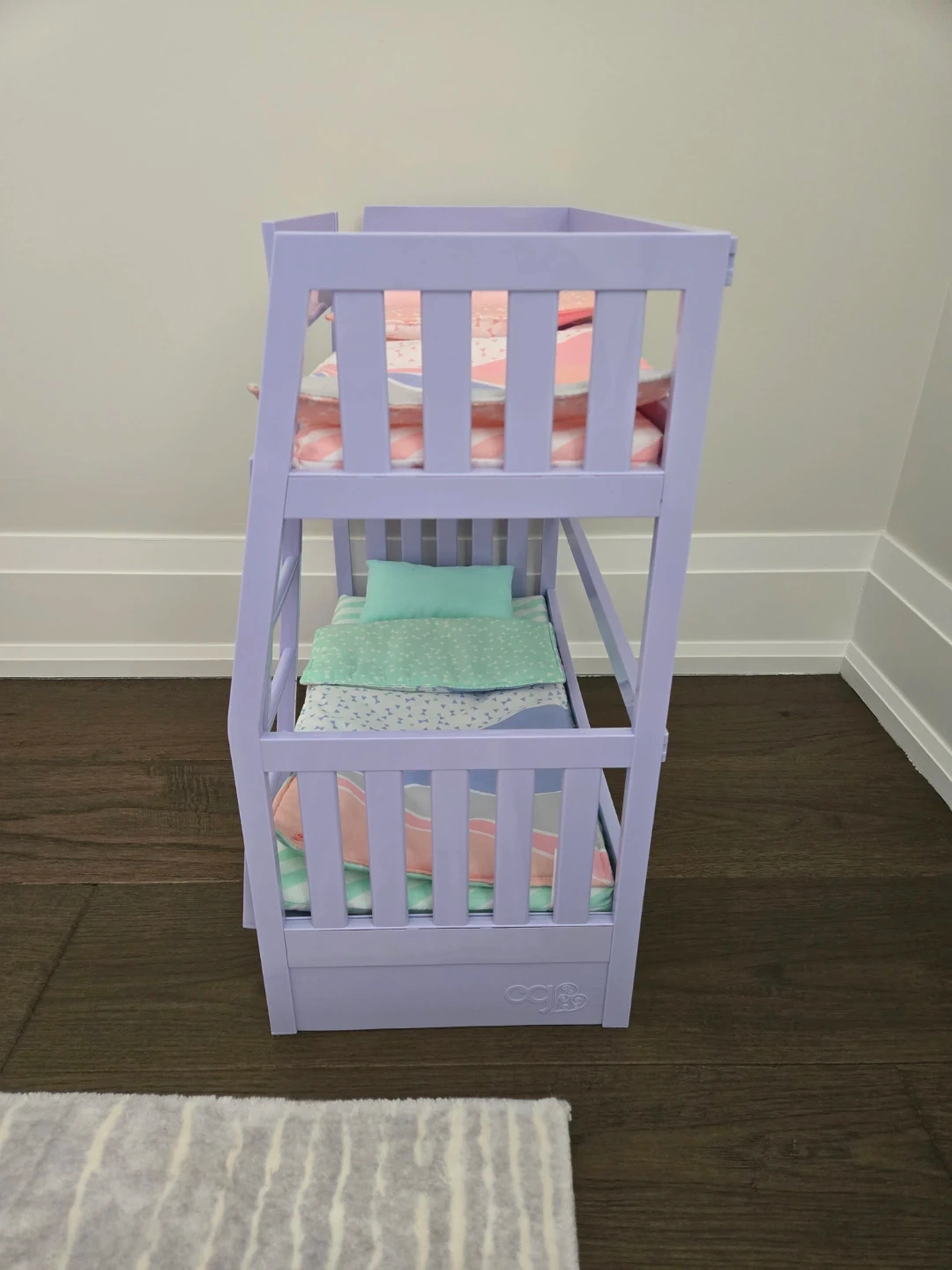 Our Generation Dreams for Two Bunk Bed set! This dreamy bunk bed for 18-inch dolls is perfect for twin dolls or doll BFFs having a sleepover.