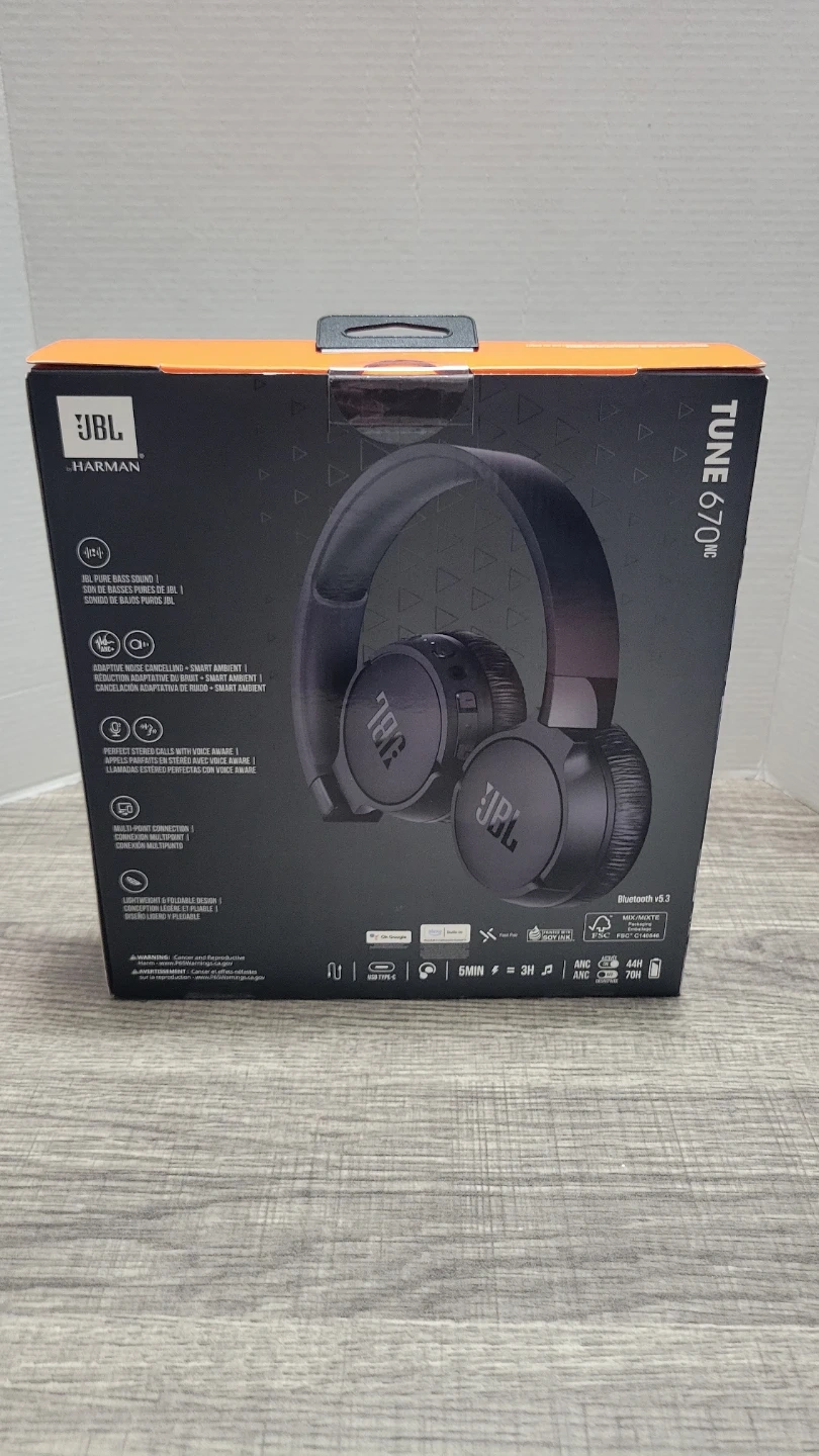 JBL TUNE 670NC wireless on-ear headphones. Includes smart ambient and voice aware features. It's Bluetooth v5.3 with 44H battery life and ANC.