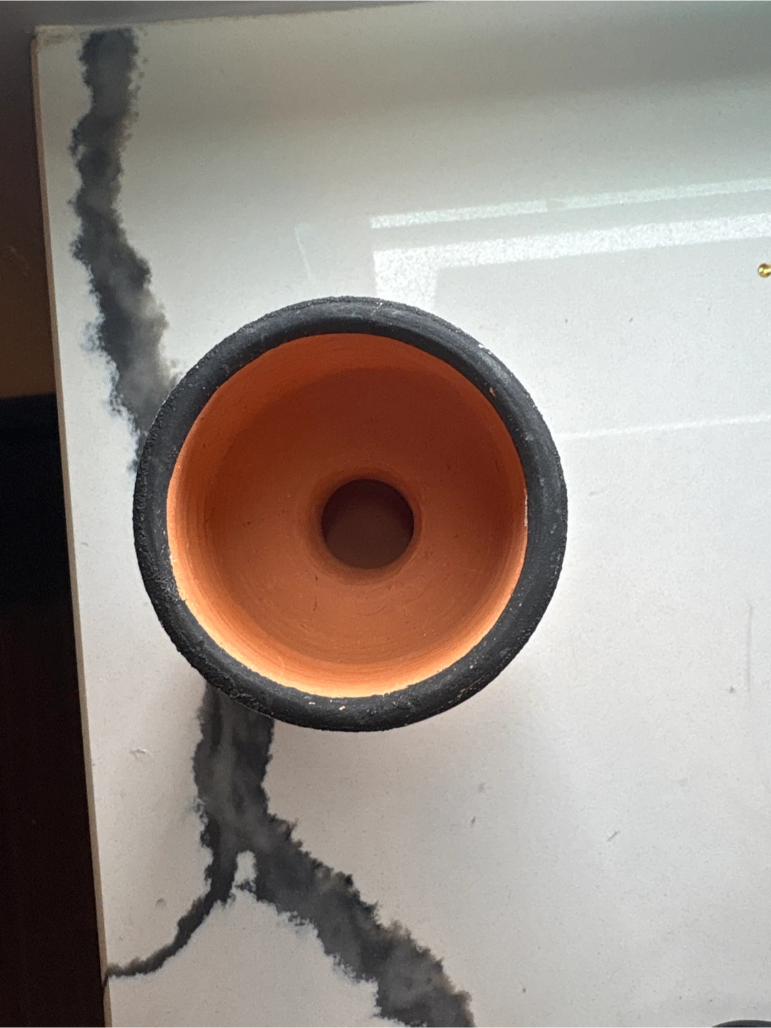 A charming handmade cup with unique painted designs. It's perfect for adding a touch of character to your home decor. The cup features a rustic design and is in good condition.