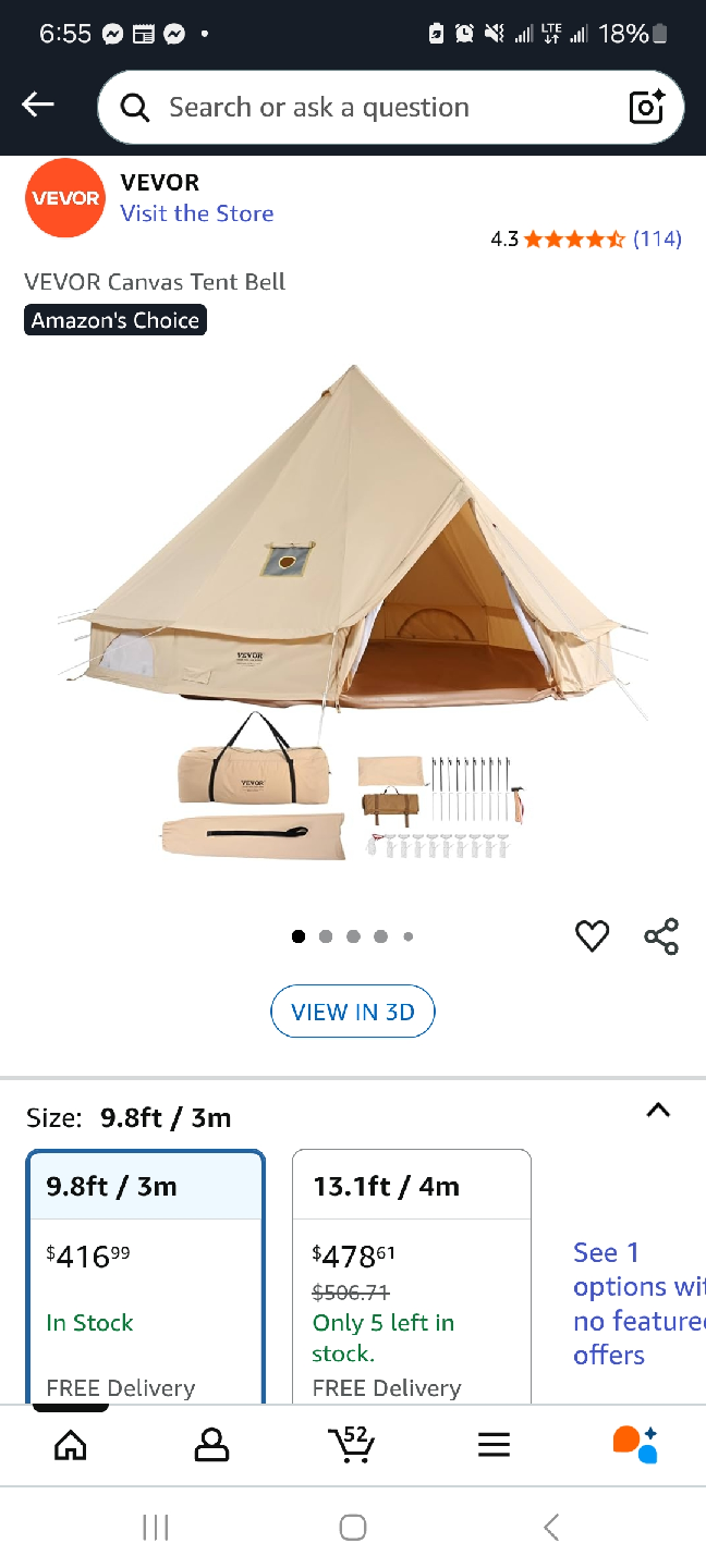 Selling a Vevor Canvas Tent Bell, sized at 9.8ft / 3m. It's in great shape and comes with its original box. Perfect for camping adventures!