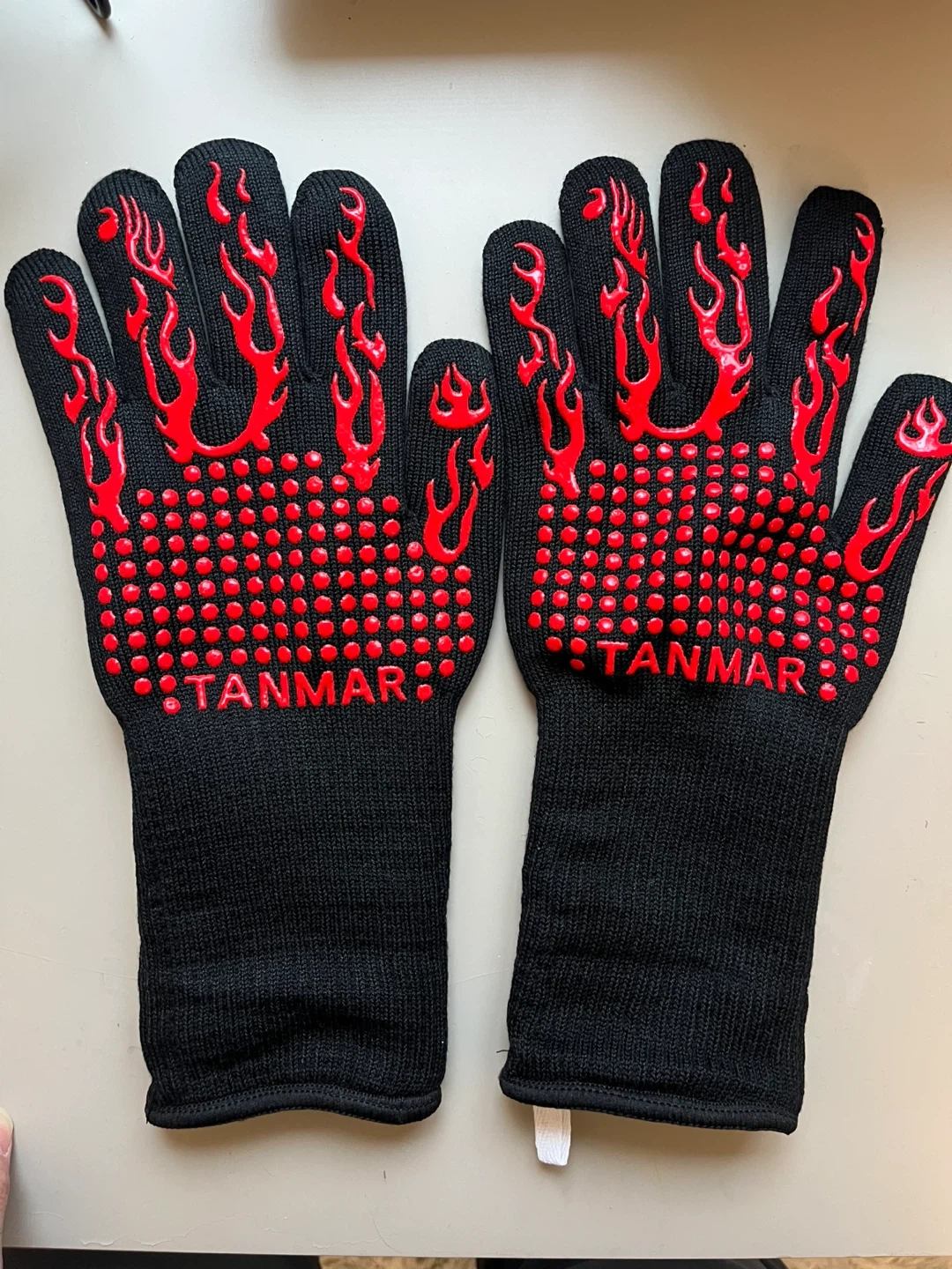 These TANMAR heat-resistant gloves are perfect for cooking, grilling, or handling hot items safely! They feature a unique flame design and a dotted grip pattern for extra protection and control. Great for use in the kitchen or outdoors