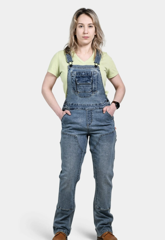 Finally. That classic indigo denim you’ve been missing in your Freshley collection. These bibs have old school vintage overalls vibes. But they’re the most functional women’s overalls on the planet. 15 pockets! Plus our famous Twine Hole™ eyelet, so you can run twine or fine-gauge wire right out of your bib pocket, like some kind of fancy spider. A flattering, straight leg silhouette. Sustainably made. And with a deep, delicious stretch that makes it easy to wear your toolbox. Let’s get it on.