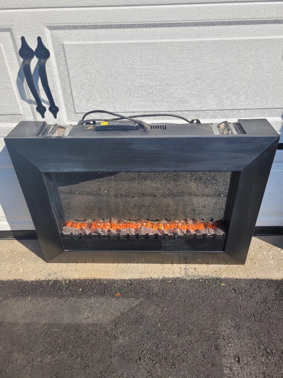 Selling an electric fireplace insert with a sleek black frame. It's in great shape and ready to add some cozy vibes to your space! The faux flames look pretty realistic and it's a nice way to add some warmth and ambience without the hassle of a real fireplace, excellent condition.