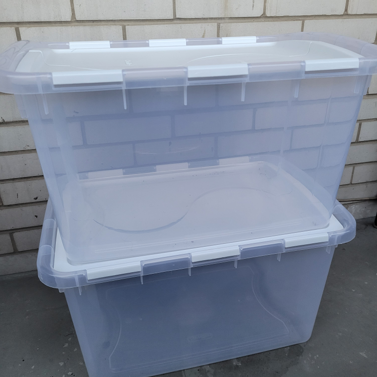 I'm selling a pair of Sterilite flip lid storage bins. They're in great shape and ready to help you organize your space. Perfect for storing clothes, toys, or anything else you need to keep tidy.