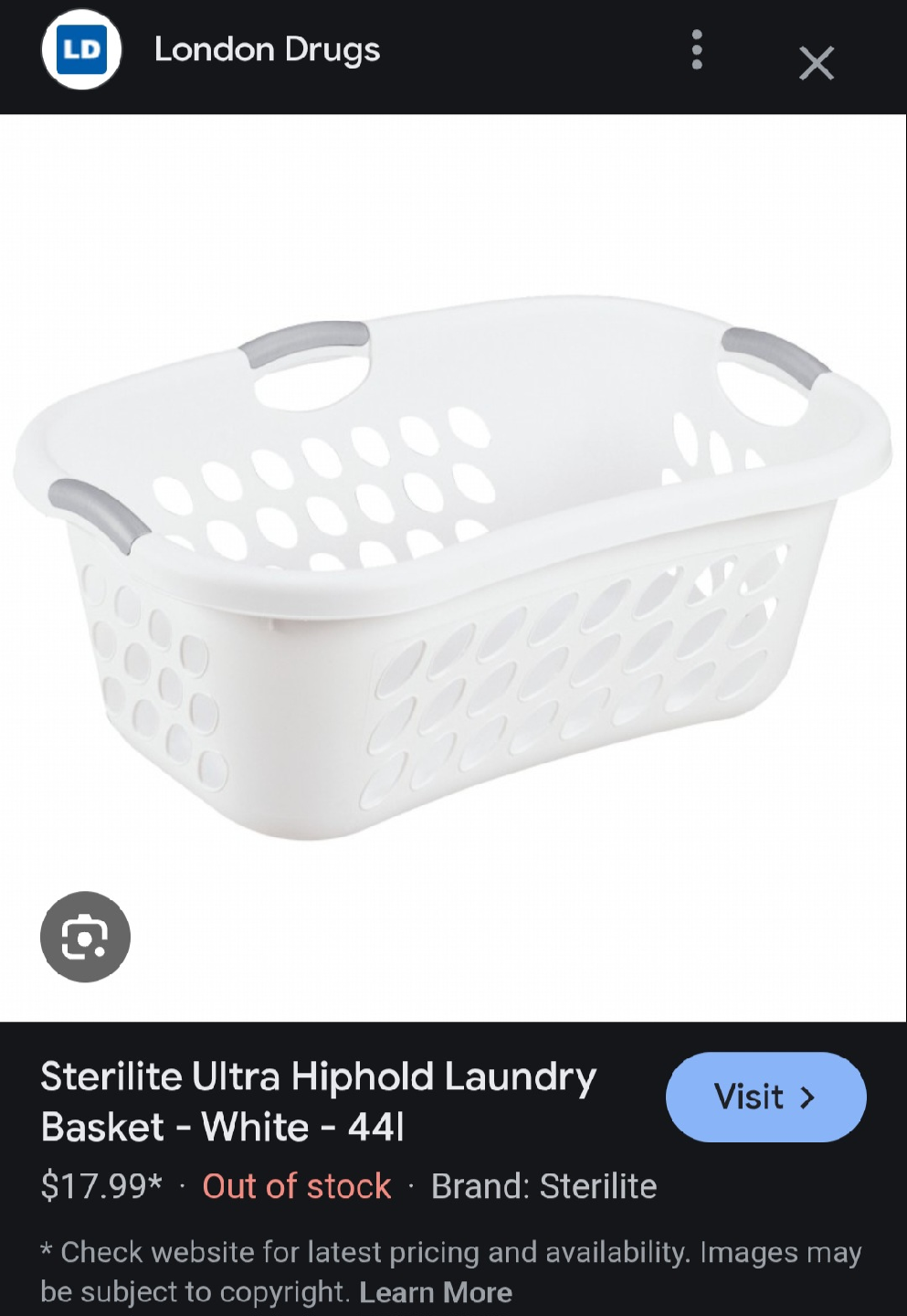 Sterilite Ultra Hiphold Laundry Basket 44L capacity.