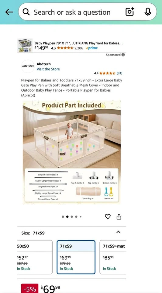 This play yard provides an oversized 71*59 inches play area for infants and toddlers, which allows children to play to their heart's content and learn how to move independently. The height is designed to help babies train to stand and walk, and babies can move freely without rolling out.