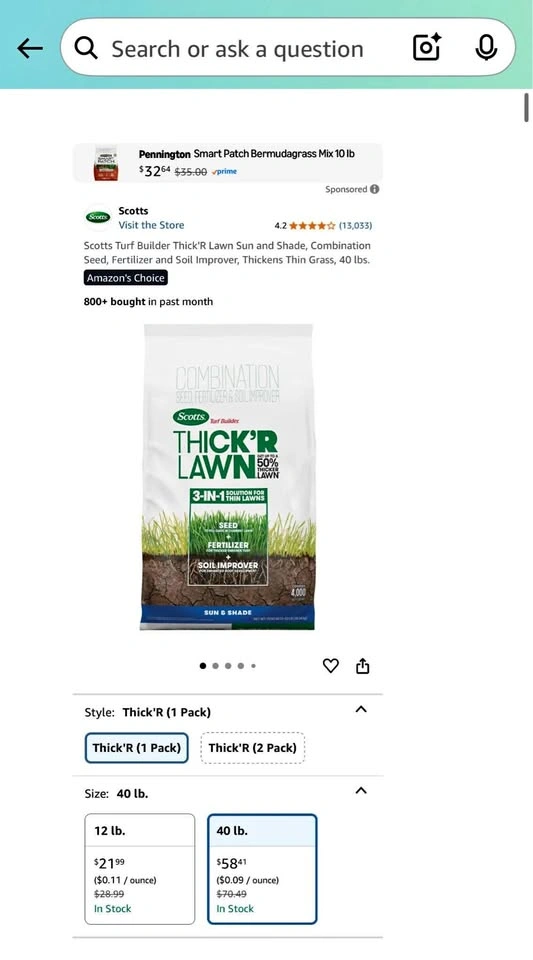Scotts Turf Builder THICK'R LAWN Sun & Shade is a 3-in-1 solution uniquely formulated to help turn your thin lawn into a thicker, greener lawn with stronger roots. Get up to a 50% thicker lawn with just one application (subject to proper care; results may vary based on current condition of lawn).