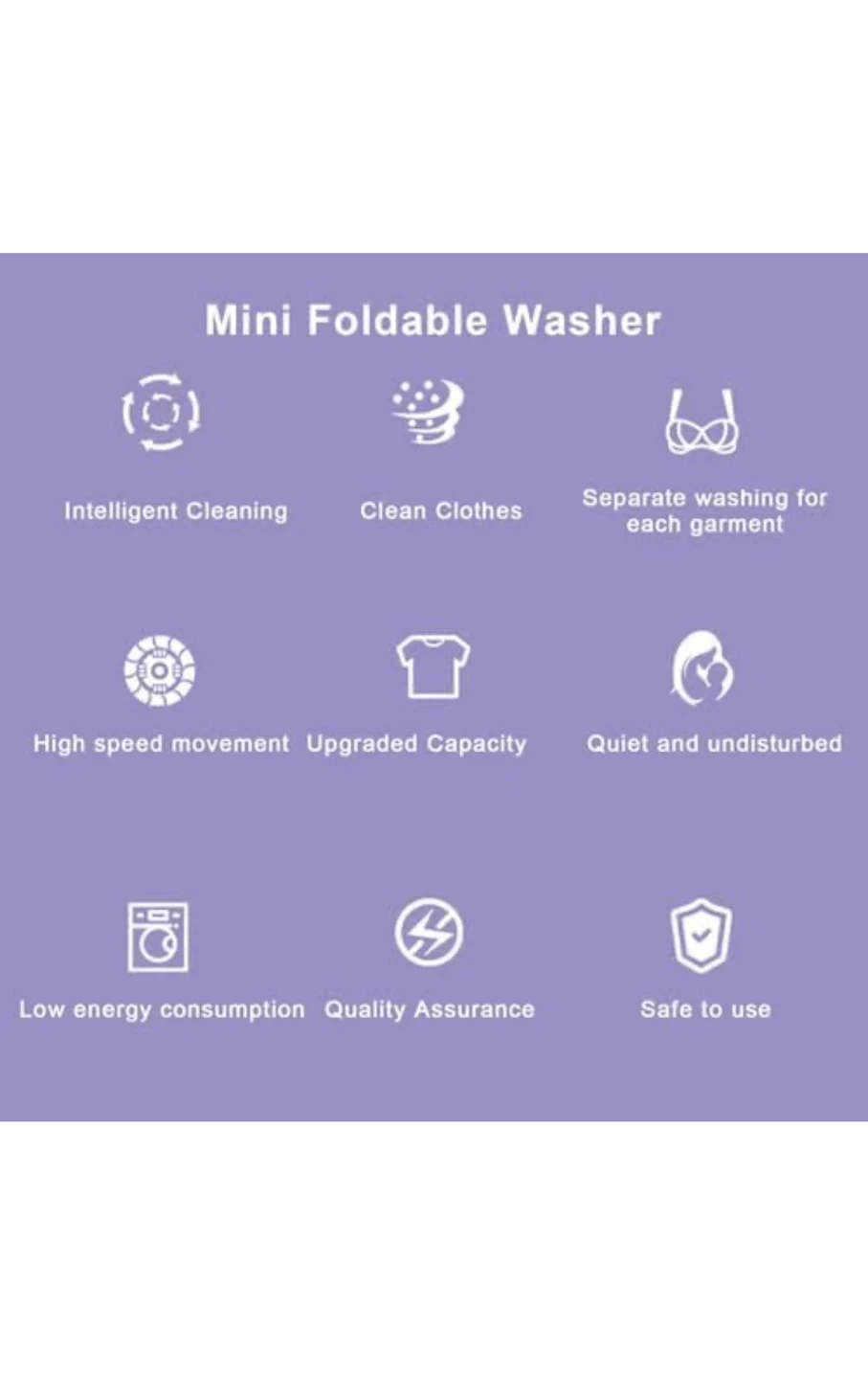 【Foldable and Portable】Designed to be foldable, this washer can be conveniently folded and stored after use, saving space and making it easy to carry. It is especially suitable for dormitories and travel purposes. Large capacity foldable mini washing machine for apartments, dormitories, hotels, small washer for baby clothes, small items.