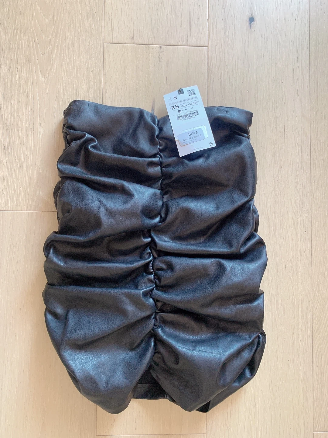 31Selling a Zara faux leather ruched skirt in size XS! The skirt is ruched, adding a stylish touch. Originally bought for $39.90 Brand new with tag Length 45cm