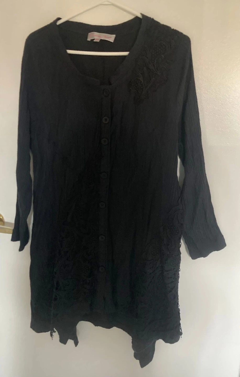 Women’s black long sleeves dress shirt . In excellent condition. Flash has been used on some of the pictures to show detail . From a smoke free home . Pick up only , in Woodstock. No delivery. First come first served. $2 firm . In excellent condition.