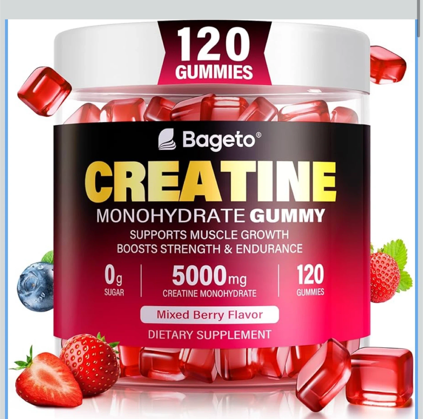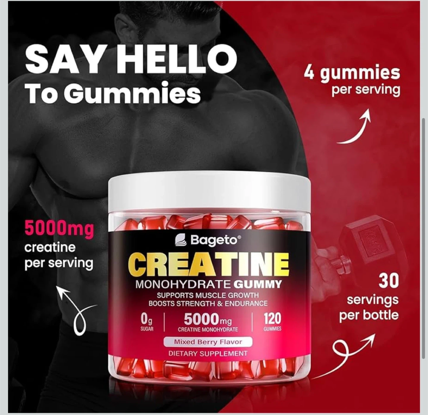 Get your gains with Bageto Creatine Monohydrate Gummies! These mixed berry flavored gummies are a tasty way to support muscle growth, boost strength, and accelerate recovery. Each serving (4 gummies) contains 5000mg of creatine monohydrate, and the bottle contains 120 gummies. They're also sugar-free, easy to carry, and won't cause bloating. A great dietary supplement to maximize your workout!