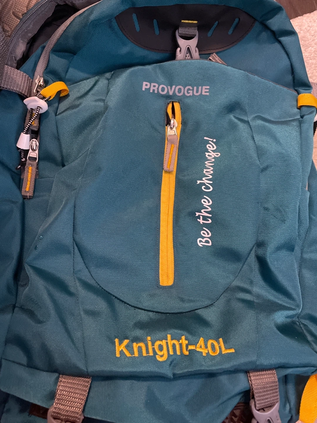 607Selling a Provogue Knight-40L backpack in great condition! It's a teal colour with yellow accents. Perfect for hiking or camping adventures!